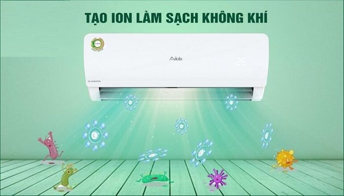 Điểm đặc biệt của điều hòa Aikibi so với các thương hiệu khác là tất cả các sản phẩm đều được trang bị thiết bị tạo ion ở phía dưới dàn lạnh, giúp tiêu diệt vi khuẩn nhanh chóng và giảm tối đa bụi bám vào. Do đó, không khí thổi ra từ điều hòa Aikibi luôn trong lành hơn.