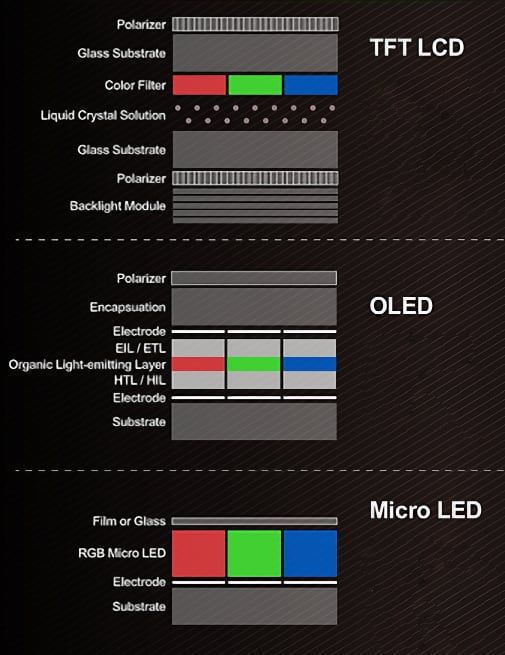 A technical comparison between TFT LCD, OLED, and Micro OLED tech