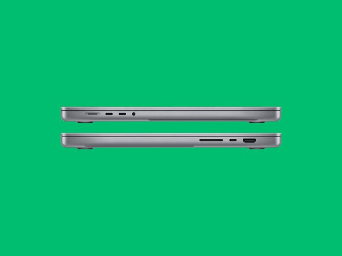 Điều phát triển đáng kinh ngạc nhất là bạn hiện có thể kết nối đến bốn màn hình vào MacBook—và sạc cùng một lúc. Nó có một cổng HDMI cho màn hình và tổng cộng ba cổng Thunderbolt 4. Nó còn có khe cắm thẻ SD. Việc thêm một jack tai nghe tốt hơn mà hoạt động với tai nghe có trở kháng cao có nghĩa là những nhà sản xuất âm nhạc có thể kết nối các mô hình đòi hỏi nhiều công suất hơn mà không cần thêm ampli tai nghe. Sạc MagSafe đã quay trở lại.