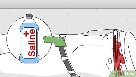 Bắt đầu làm sạch vết thương. Nếu bạn ở nơi xa lánh và không thể gọi cứu thì bạn cần rửa vết thương sau khi đã dừng máu. Trong điều kiện bình thường, điều này thuộc trách nhiệm của nhân viên cấp cứu, nhưng đôi khi bạn phải tự làm.