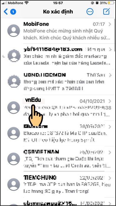 - Mở phần Tin nhắn trên điện thoại, tìm tin nhắn từ vnEdu.