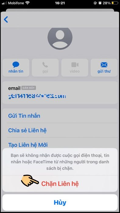 - Nhấn Chặn liên hệ.