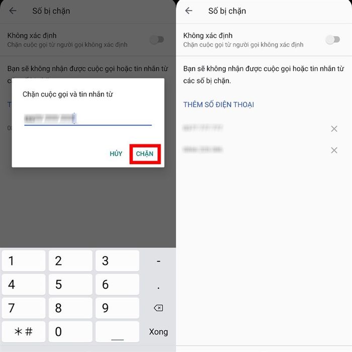 - Điền số điện thoại Tổng đài vnEdu vào ô trống Chặn cuộc gọi và tin nhắn từ rồi nhấn Chặn.