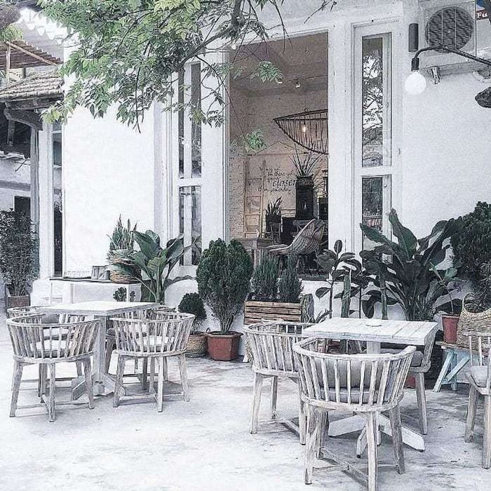Không gian ngoại thất thu nhận ánh sáng tự nhiên qua kính trần, mọi nơi đều rợp cây xanh, đặc biệt là những chậu xương rồng nhỏ xinh trong lọ thủy tinh đáng yêu, những bình hoa nhỏ và những giỏ hoa treo cao từ trên cao. Dù thời tiết ngoại trời ra sao, quán cà phê đẹp Hà Nội bên trong vẫn luôn tươi mới. Check in và sống ảo tại đây là trải nghiệm tuyệt vời, quá xinh đẹp để có điểm trừ. Gần cây cỏ, thưởng thức mùi thơm tự nhiên là đủ để tạo dáng xinh lung linh trước background xanh tươi.