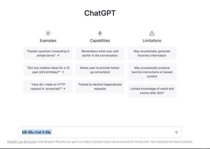 Sau khi đăng ký tài khoản ChatGPT, mọi người truy cập trang web https://chat.openai.com/chat và đăng nhập. Sau đó, chỉ cần nhập nội dung vào chat là xong, rất đơn giản.Sử dụng ChatGPT để làm gì