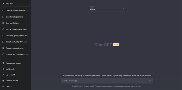 ChatGPT Plus sử dụng mô hình ngôn ngữ GPT-4 với nhiều cập nhật về dữ liệu và tính năng cải tiến hơn GPT3.5.