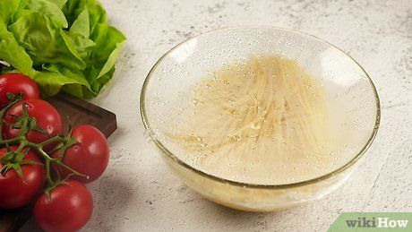 Rót vào bát nước đủ để ngập mì khoảng 5 cm. Sử dụng nước ở nhiệt độ phòng hoặc mở vòi để nước chảy vào bát. Đảm bảo mì hoàn toàn ngập trong nước.