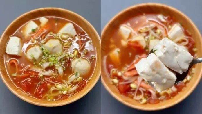 Nếu bạn không muốn nấu ăn, hãy thử ngay canh rau củ trong quá trình giảm cân. Ngay cả khi nấu trong nồi lớn, vẫn thơm ngon! Cho cà chua và thịt viên ức gà vào nồi, nấu chín và khi sắp sôi, thêm giá đỗ và đậu phụ vào, thêm chút muối hoặc nước tương để nêm gia vị. Bạn cũng có thể thêm vài thanh cua để tăng cảm giác no mà không lo tăng cân.