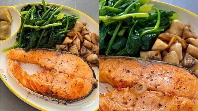 Cá hồi chiên hoặc nướng đều ngon và giàu chất béo không bão hòa, là lựa chọn tốt nhất trong thời kỳ giảm cân! Bạn có thể chọn các loại rau ưa thích để ăn kèm, thưởng thức hương vị tự nhiên của nguyên liệu mà không cần lo lắng về việc sử dụng quá nhiều gia vị. Cuối cùng, thêm ít nấm xào tiêu và khoai lang hấp để bổ sung carbohydrate chất lượng, giúp tăng cảm giác no.