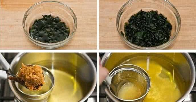 Ngâm rong biển cho nở rồi hòa tương miso và dashi