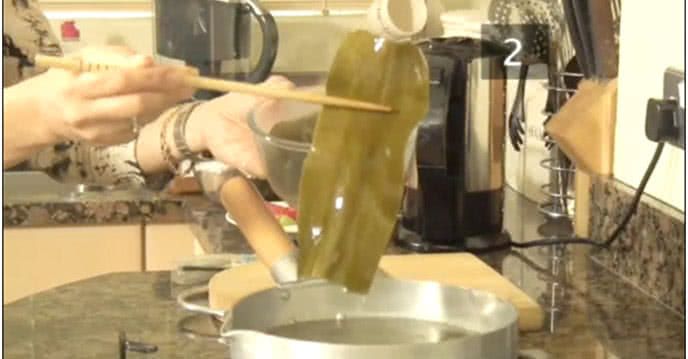 Ngâm rong biển kỹ lưỡng và đun trong nước lạnh cho đến khi gần sôi, sau đó vớt ra
