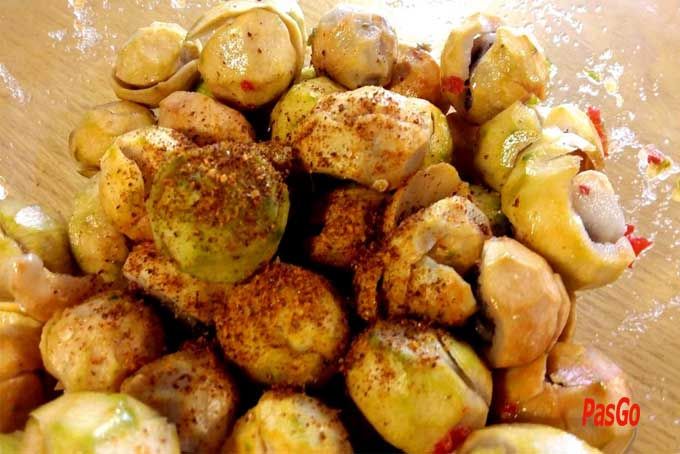 Những lớp vỏ sấu giòn sần kết hợp với nhân mềm ngọt chua cay tạo nên một bức tranh hấp dẫn, chỉ cần nhìn thôi đã khiến bạn muốn thưởng thức.