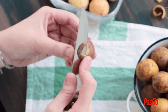- Sử dụng dao gọt theo hình xoáy ốc để tách thịt sấu. Hạn chế sử dụng cách thông thường để đảm bảo lấy hết thịt sấu.