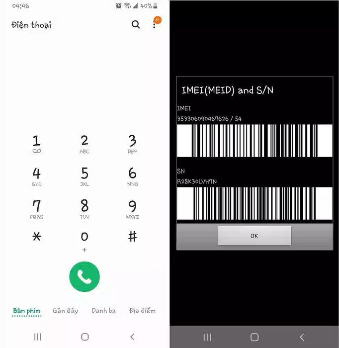 Sử dụng cú pháp nhà cung cấp để tra mã IMEI một cách thuận tiện. Mở ứng dụng cuộc gọi và nhập *#06# trên bàn phím. Mã IMEI sẽ xuất hiện tại dòng “IMEI 1”. Nếu sử dụng điện thoại Samsung có 2 sim, lưu ý chỉ giữ lại IMEI 1 để kiểm tra bảo hành.