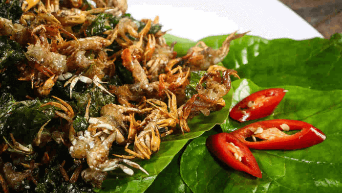 Hương vị đặc sản cua đồng rang lá lốt của Ninh Bình