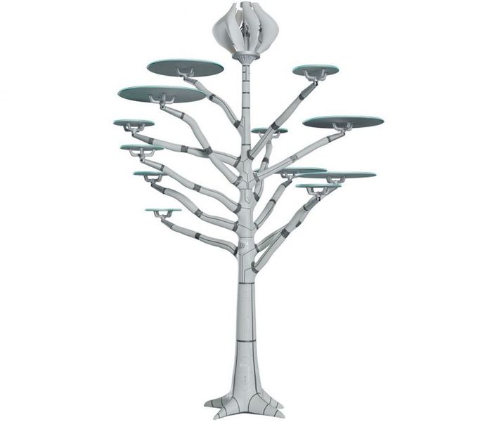 Daymak’s concept for a crypto mining EV solar charger.Mỗi cây hứa hẹn sẽ được kết nối 5G, sử dụng năng lượng mặt trời và gió, và có thể tạo ra đến 11 kW năng lượng tái tạo. Nó cũng phục vụ các ứng dụng thay thế như trạm sạc xe điện, hoặc nguồn điện dự phòng trong hai ngày.