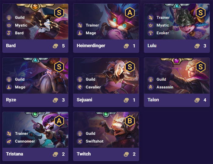 Ở giai đoạn này, bạn có thể triệu hồi 2 mảnh ghép còn thiếu là Bard và Talon. Từ đó kích hoạt thêm các hiệu ứng mới là 1 Nhạc Công, 2 Bí Ẩn và nâng cấp hiệu ứng cũ lên 5 Bang Hội. Với sự xuất hiện của Bard sẽ giúp bạn tăng tỉ lệ mua được những vị tướng mạnh mình cần trong cửa hàng.