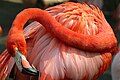 Một con hồng hạc Caribbe (Phoenicopterus ruber), với ảnh những con hồng hạc Chile (P. chilensis) ở phía sau | |