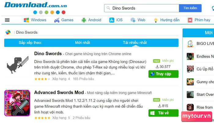 Bước 1: Mở trình duyệt web và truy cập vào trang Download.com.vn, sau đó nhập tên game vào thanh tìm kiếm.