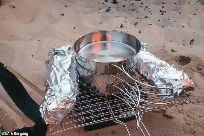 Chuẩn bị bữa sáng – nướng bánh mì và luộc trứng (cái vỉ nướng mang theo có tác dụng ghê).
