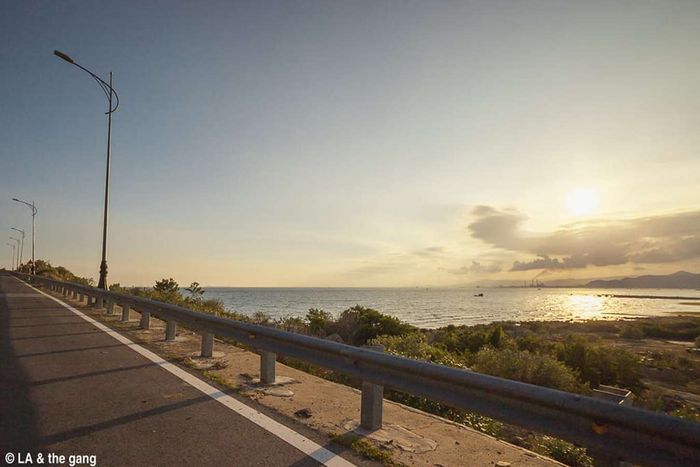 Từ Phan Rí Cửa đến khu vực Đầm Cà Ná, đoạn đường không có gì đặc sắc, nhưng khi đến Đầm Cà Ná, mọi thứ thay đổi. Con đường dẫn bạn đi qua đầm nước với hồ nước hai bên, sau đó nối với một con đèo cao, một bên là vách núi, một bên là biển. Mặc dù đã hơi tối khi chúng tôi đến Đầm Cà Ná và chỉ còn ít ánh sáng để ngắm hoàng hôn trên đèo, nhưng chúng tôi vẫn tiếp tục chạy để không bỏ lỡ cảnh đẹp nơi đây.