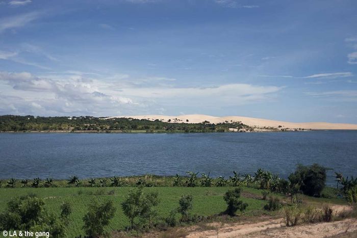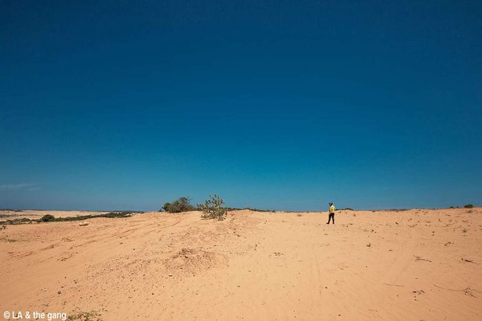Sau đoạn này, bạn sẽ đến khu vực Bàu Sen - Bàu Trắng và đồi cát trắng. Nơi đây là điểm lý tưởng để chụp hình. Đối diện đồi cát trắng, có một đồi cát thênh thang, là địa điểm lý tưởng để chụp hình sống ảo giữa sa mạc, miễn là bạn không ngại nắng. Từ đây đến Phan Rí Cửa, bạn sẽ đi qua đoạn đường nổi tiếng với đồi cát trắng hai bên. Thông tin vui là đoạn đường này đẹp như trong hình, nhưng thông tin buồn là đẹp nhất chỉ kéo dài khoảng... 1 km.