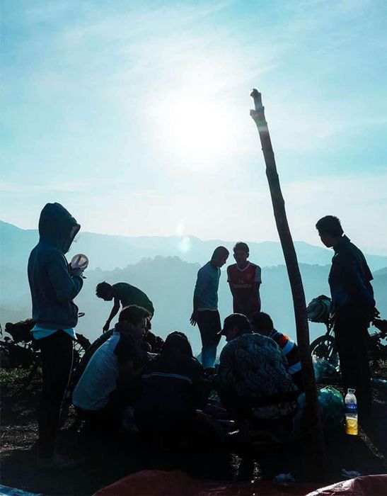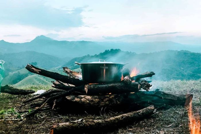 Chọn một quả đồi ưng ý, dựng lều và chuẩn bị cho bữa tiệc tối. Sau vài bước nhỏ, chúng tôi tổ chức một bữa tiệc đầy đủ với gà nướng, bắp nướng, chả lụa, và mì, dưới ánh trăng sáng. Một trải nghiệm tuyệt vời.