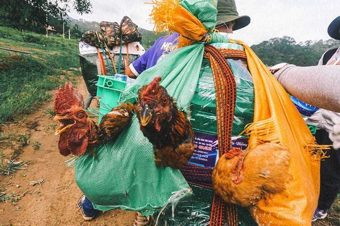 Sau một đoạn đường, anh hướng dẫn viên dừng lại, quyết định giấu xe trong rừng vì đường rừng không thể tiếp tục đi bằng xe thồ. Nhóm nhanh chóng phân chia và mang đồ từ xe xuống.