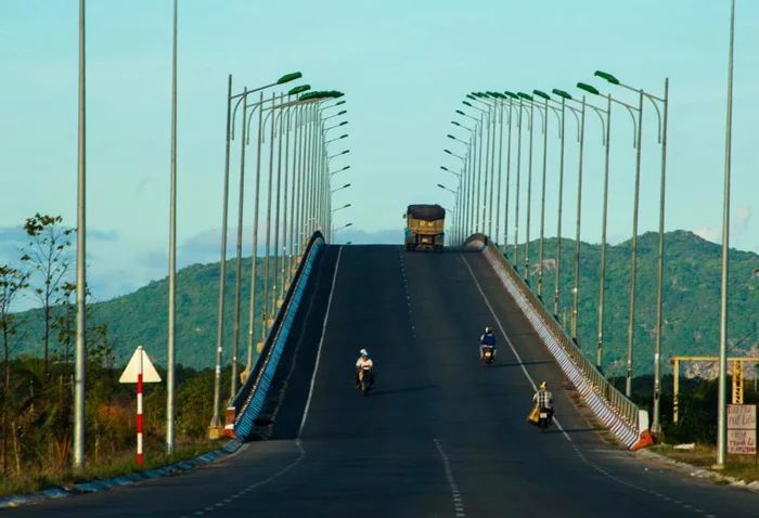 Con đường mới mở, ít người biết nhưng đẹp và dễ đi. Cảnh đẹp ven đường với làng bè, ruộng muối và hàng hoa phượng đỏ rực là điểm đặc sắc của tuyến đường này. Bạn còn có thể tận hưởng ẩm thực hải sản tại những nhà hàng nổi trên sông, tận hưởng sự thư giãn giữa không gian yên bình.