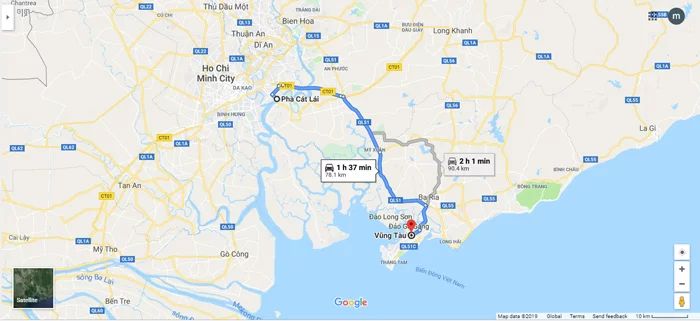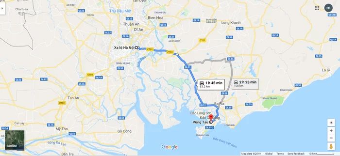 Theo đường Điện Biên Phủ, qua cầu Sài Gòn, vào Xa lộ Hà Nội, rồi rẽ phải vào Quốc lộ 51, bạn sẽ đến Vũng Tàu sau khoảng 100km