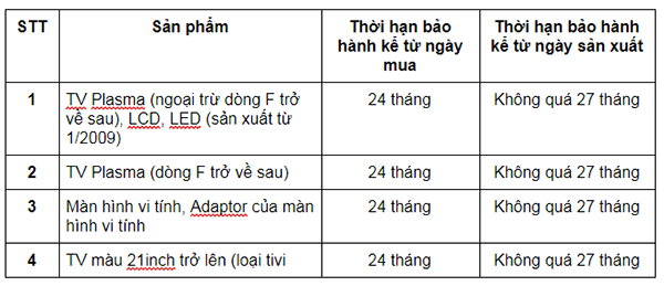 - Thời gian bảo hành của sản phẩm đã kết thúc.