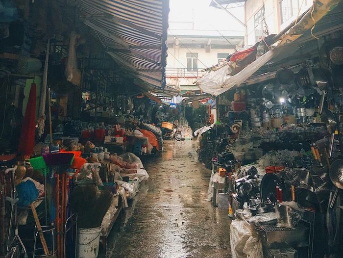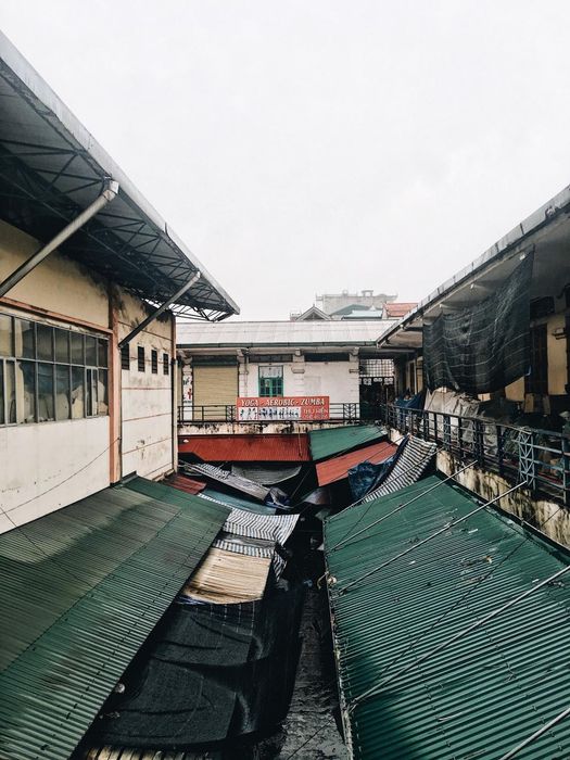 Trong những ngày cuối tuần mưa, không gian chợ Bo dường như trở nên yên bình và tĩnh lặng hơn. Tầng 2 của chợ đã từng rực rỡ với hàng trăm mặt hàng, nhưng giờ đây chỉ còn lại vài gian hàng đơn điệu.