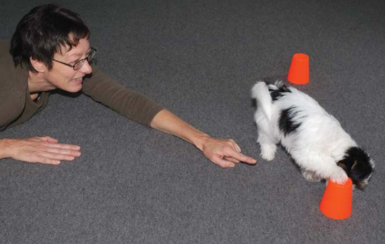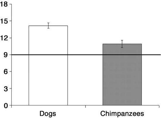 Tinh tinh có thể được coi là một trong những loài động vật thông minh nhất, nhưng chúng không thể thực hiện được thí nghiệm đơn giản này một cách chính xác; ngược lại, những con chó lại thể hiện sự chính xác nhiều hơn: ngay cả khi không được huấn luyện, chúng có khả năng đọc được cử chỉ của con người và xác định chính xác cốc nào chứa thức ăn.
