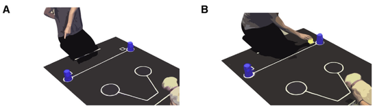Thí nghiệm này khá đơn giản, người thử nghiệm sẽ giấu thức ăn trong hai chiếc cốc màu đục úp ngược và để đối tượng (trẻ em hoặc các loài động vật) chọn chiếc cốc chứa thức ăn. Trước khi chọn, người thử nghiệm sẽ dùng ngón tay, gõ nhẹ vào cốc hoặc dùng mắt để chỉ ra cốc chứa thức ăn.