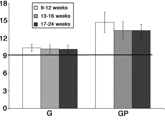 Những con chó ở các độ tuổi khác nhau cho thấy hiệu suất tương tự trong thí nghiệm, trong đó G có nghĩa là 'cử chỉ mắt' và GP có nghĩa là 'cử chỉ mắt + cử chỉ ngón tay'.