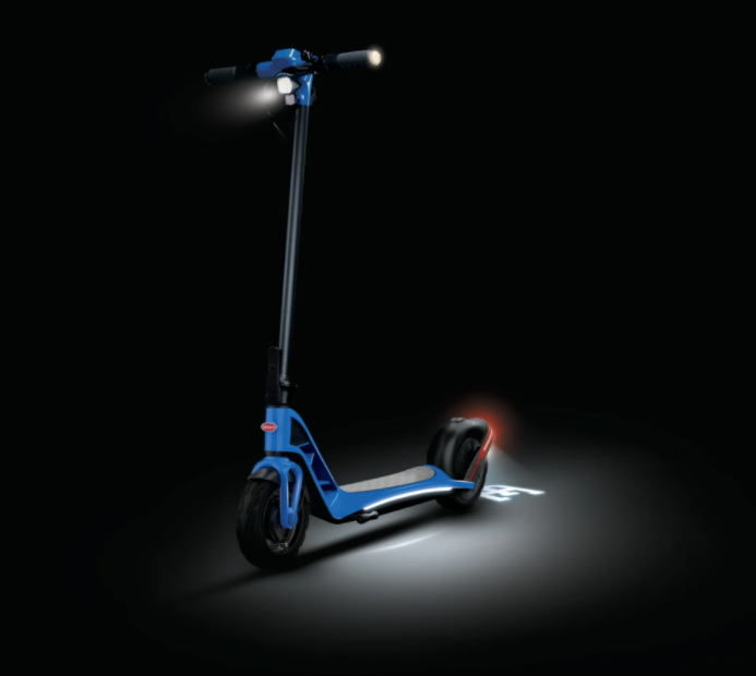 BATMAN STYLE! (Credit: Bugatti)Bugatti cũng đã sử dụng đèn lớn để tăng cường an toàn. Xe máy điện có đèn cơ bản sáng sáng ở hai bên của bàn đạp và phía sau, cũng như có đèn báo rẽ kép trên tay cầm, cũng như phía trên cản bùn sau.