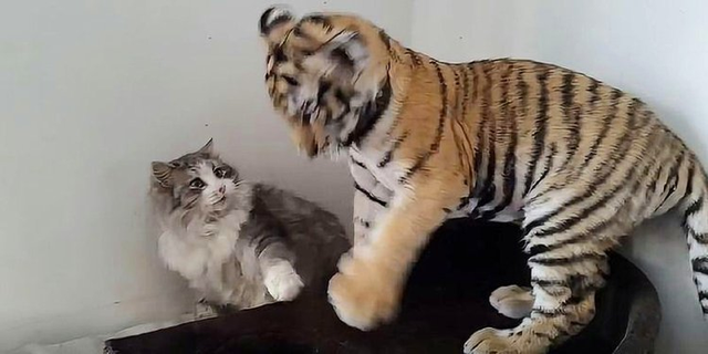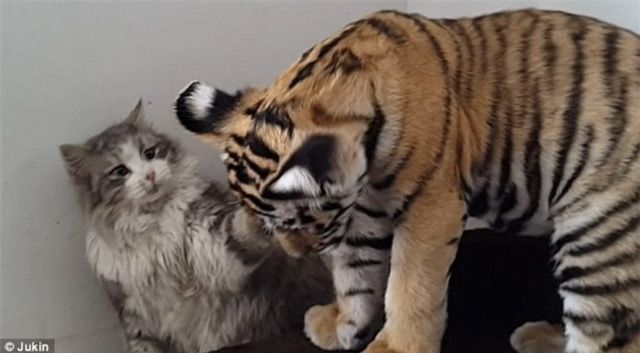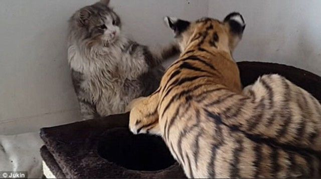 Một câu chuyện thú vị về sự gặp gỡ giữa chú hổ dịu dàng và mèo nhà cá tính