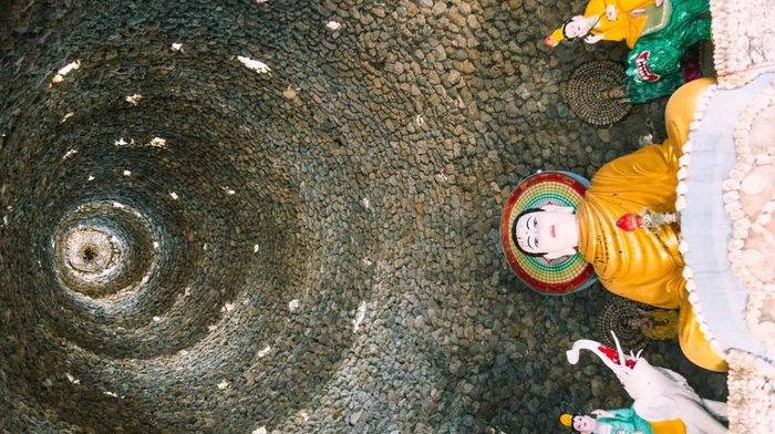 Chùa Từ Vân với khung cảnh độc đáo, làm hài lòng những người yêu thích nghệ thuật vỏ ốc.