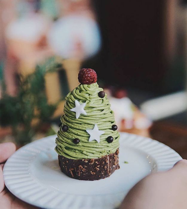 @moricocafeMón Mont Blanc hình cây Giáng Sinh cực kỳ dễ thương đấy. Bánh bông lan mềm mịn kết hợp với lớp kem phô mai cream cheese thơm béo. Đặc biệt, đế bánh chocolate ngọt ngào càng làm cho món ăn trở nên hoàn hảo hơn.