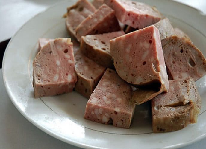 Giò bò đạt chuẩn khi có mùi thơm của hạt tiêu, màu hồng của thịt. Ăn kèm cơm nóng hoặc bánh chưng đều tuyệt vời.