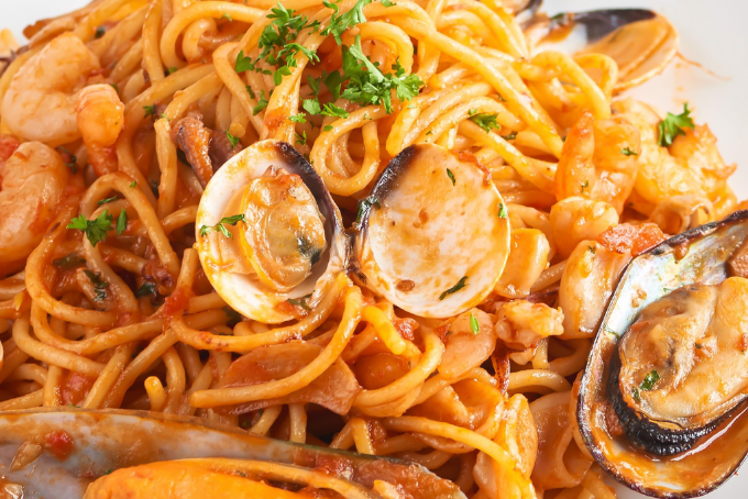 Sợi mì dai dai, mềm mại, phần nước sốt cà chua thơm ngọt, cùng các loại hải sản đậm đà, hấp dẫn, tất cả hòa quyện với nhau để tạo nên một món ăn ngon chứa đựng hương vị đặc trưng của biển cả.