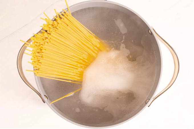 Khi mì đã nấu chín, hãy vớt ra và để ráo nước.