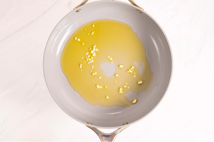 Đun nóng 1/4 cốc dầu ô liu trong chảo, thêm tỏi vào xào trong 2 phút.