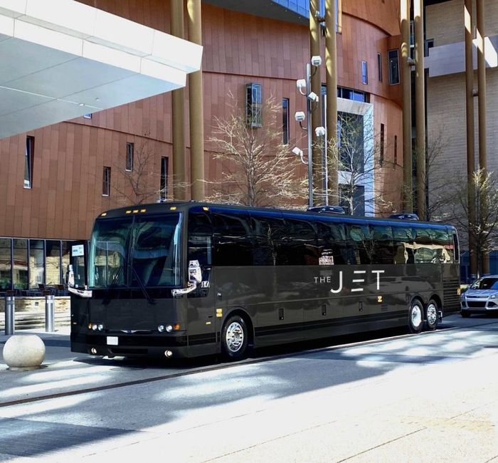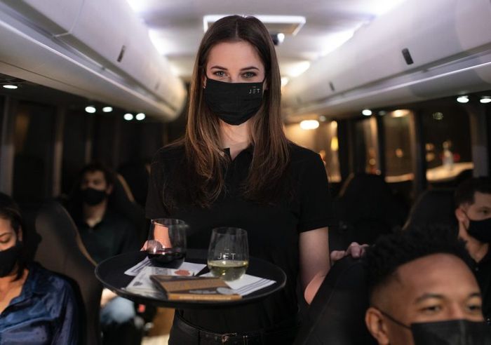 A bus like a plan. Credit: The JetKhông cần phải tìm kiếm xa hơn The Jet nếu bạn đang tìm kiếm một cách du lịch sang trọng hơn. Công ty Mỹ quảng cáo mình là người cung cấp dịch vụ đi lại bằng xe buýt “phổ cập hạng nhất.” Xe buýt của họ chở tối đa 14 hành khách, với lối đi rộng 1.8m (6ft).