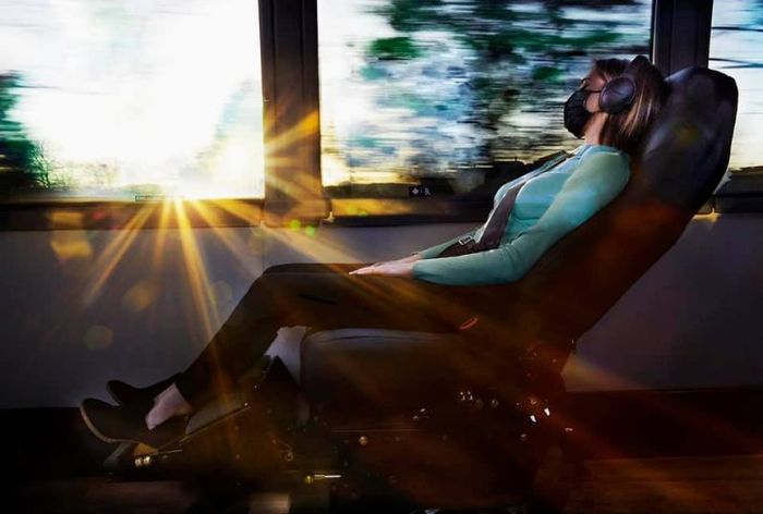 Comfortable reclining seats, oh yes. Credit: The JetGhế là bọt nhớ và bao gồm bàn tray, chỗ để chân, có thể nghiêng 45° và “chỗ ngồi rộng nhất trong ngành công nghiệp.” Còn tốt hơn là công nghệ chống chuyển động loại bỏ 90% các gập và rung từ đường.