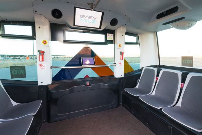 Inside the EasyMile. Credit: EasyMileEasyMile là công ty đầu tiên cung cấp hoạt động hoàn toàn không người lái của một chiếc xe buýt đưa đón tự động.