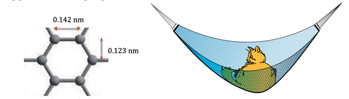 The hypothetical hammock would weigh just 0.77 mg and support a 4 kg cat. Credit: Royal Swedish Academy of Sciences.Kinaret nhận ra tiềm năng đó. Ba năm sau, anh đứng đầu chiến dịch của EU để đưa graphene từ phòng thí nghiệm ra thị trường.