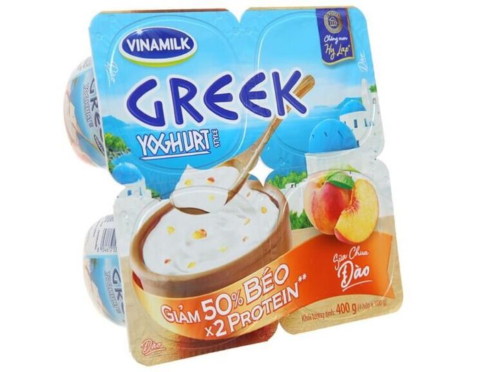- Sữa chua Vinamilk kiểu Hy Lạp vị đào, giảm 50% chất béo