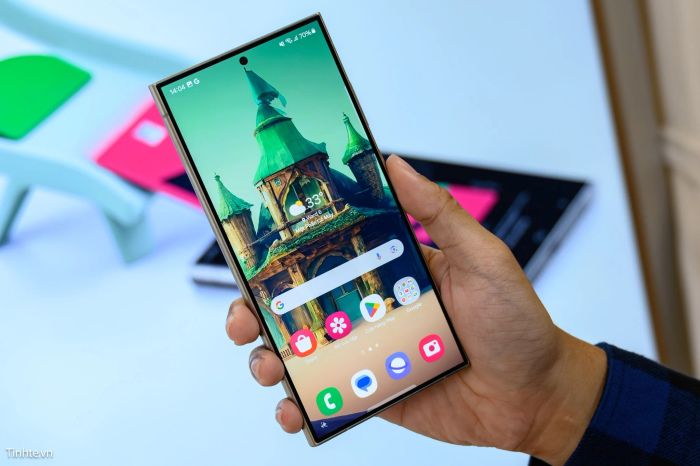 Kích thước màn hình vẫn là 6'8, nhưng lần này nó hoàn toàn phẳng, không cong nhẹ ở cả hai phía như năm trước. Điều này cho thấy Samsung đang dần loại bỏ panel cong sau nhiều năm sử dụng. Nếu bạn từng sử dụng S23 Ultra năm trước và cảm thấy khó chịu với màn hình cong, thì năm nay là một bước cải tiến đáng kể. Màn hình cong không chỉ gây bẻ cong ánh sáng mà còn tạo hiệu ứng màu sắc khác biệt so với phần còn lại.