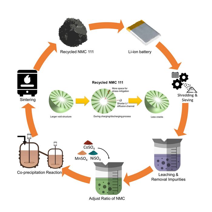 The recycling process. Credit: Wang et al.Cathode tái chế là một điều tuyệt vời và hiệu quả
